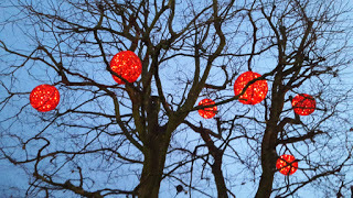 Jag fängslades av de här underbara färgklickarna i träden. Fin juldekoration.