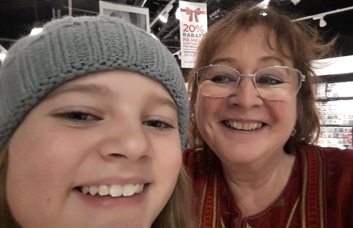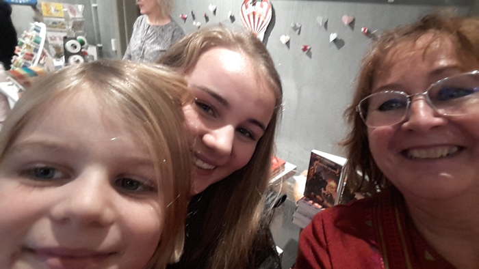 Fika efter signering med några av mina stora fans. Här är det Lill-Kim och jag.