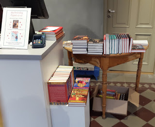 När jag var på väg ut upptäckte jag att mina böcker var på "vi rekommenderar"-bordet alldeles vid kassan. Jättekul!
