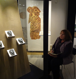 Även museichef Marcus Sandekjer ställer upp och följer med ut på researchen. Mikael och Marcus har mycket att berätta om och många idéer. En av dem är att nästa gång det är ett arrangemang om guldgubbarna ska jag vara med. Om du kommer hittar du mig förmodligen sittande framför montern med guldgubbarna, där jag låter pennan löpa fram över papperet, inspirerad av atmosfären och allt omkring mig.