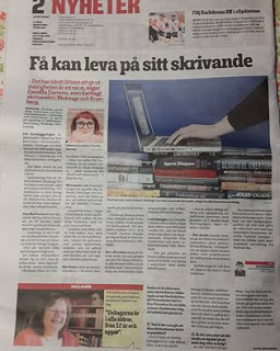 När jag kom hem var det första maken sa att de hade pratat om mig på nyheterna. Att jag och Ulf Nilsson var de enda Blekingeförfattarna som kunde leva på vårt författarskap. Sedan slog jag upp tidningen jag köpt på vägen hem, där stod samma sak, samt ännu en artikel om mig och skrivarkursen jag just hade hållit. Kanske jag är lite kändis ändå...