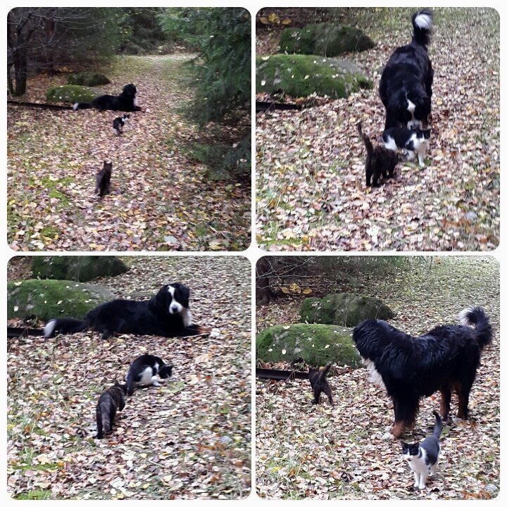 Lycka för mig är att ta en runda tillsammans med Tudor och kattungarna. Tudor är mån om kattungarna och håller ordning på dem. Men igår blev det fart på honom. Han hoppade omkring som en galning och försökte få igång dem att leka. Bara Troll lekte med. Trulsa blev mest rädd.