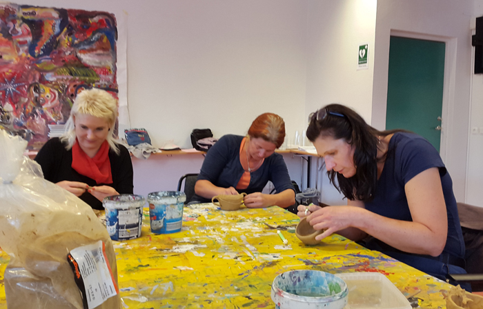 Alexander håller kurser i keramik och jag lyckades åstadkomma något som ska likna en temugg och en äggkopp.