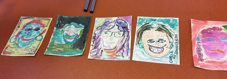 Här ser du alla fina porträtt. Färgerna hade vi själva valt i en av de första uppgifterna, utan att veta vad de skulle användas till.