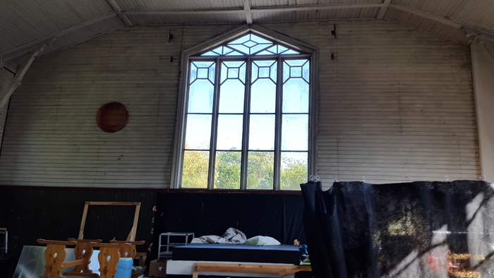 Här inspekterar vi lokaler. Den ska passa både för skrivning, dans, musik, keramik och målning. Inte lätt! Halwin, Camilla och Johan.