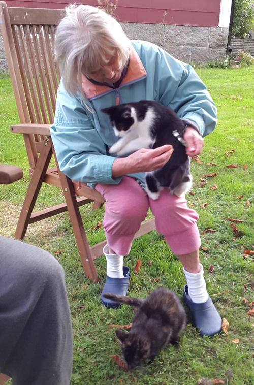 "Mer! Mer!" säger Troll och Trulsa och kikar på kattvaktens hand. Ibland biter de henne i fingrarna, eftersom de luktar kattgodis.