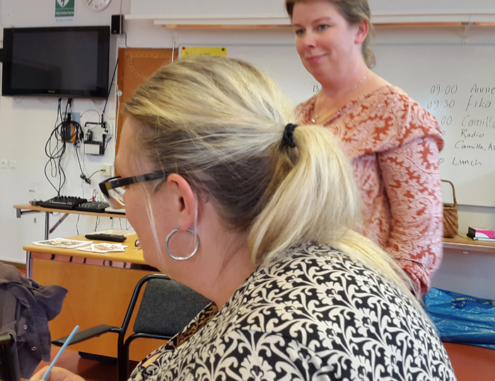 Anna, närmast i bild är den som ska gå bredvid när jag håller mina kurser. Sigrid i bakgrunden är koordinator och den som håller ihop oss. Otroligt duktig!