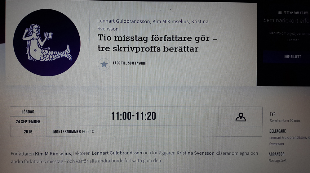 Seminariet 10 misstag författare gör Bokmässan Göteborg