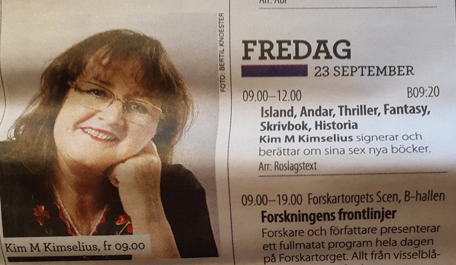 Flera sidor med monterprogram och endast 16 foton och ett av dem var på mig. Konstig känsla. Okej jag har varit med förr, men av någon anledning var det större den här gången, för jag visste inte om det. Bokmässan hade hämtat ett av mina Pressfoton, vilket fick mig att inse hur oerhört viktigt det är med bra pressfoton. Jag har rätt många nu och försöker ta nya varje år. Dessutom ska jag hålla