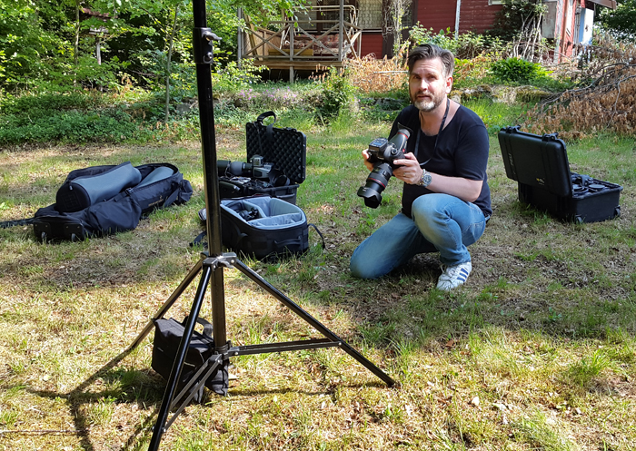 Tänk att det behövs så många prylar för att ta ett foto... Jag som bara lyfter upp mobilen och knäpper foton medan fotografen ställer in sina kameror.