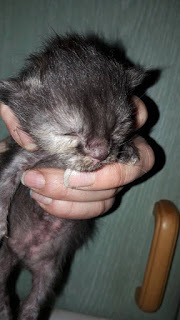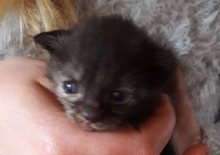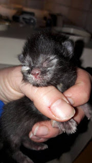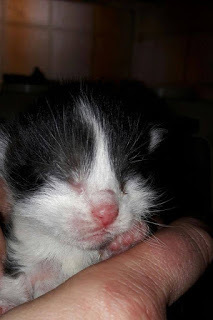 Fick snabbt ett meddelande om att Lailas Katthjälp hade en hemlös, dräktig katt. Jag tingade genast två kattungar. En timma senare var kattungarna födda och jag fick de första bilderna på dem.