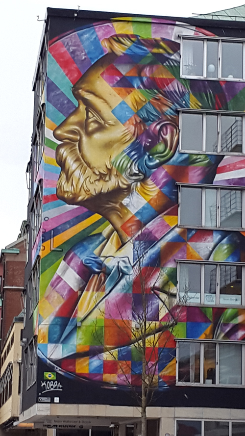 , där konstnärerna får smycka stadens hus. Linda tog mig med på en två timmars rundtur i staden för att visa både stora och små magiska utsmyckningar.