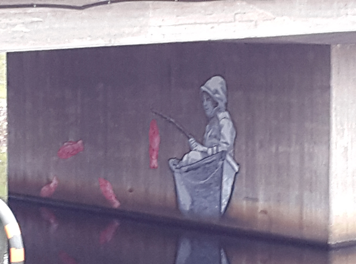 ...Pojken som sitter på bropelaren och fiskar...