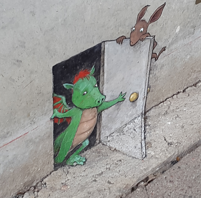 Det här blev min favorit. En liten, liten utsmyckning, längst ned på en husgrund. Målat så det ser ut som om dörren är öppen.