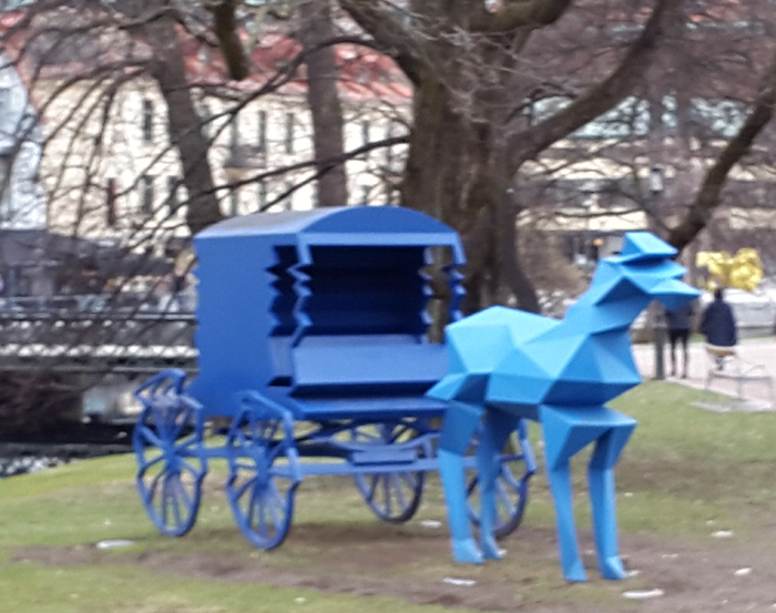 "En synvilla!" sa Linda om den här hästen och vagnen. Och det verkar inte vara bättre, för jag tog många kort på den här utsmyckningen, alla blev suddiga...