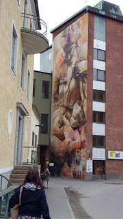 Linda lämnade mig vid Ute och tog bussen hem. Jag vandrade tillbaka till hotellet och fotograferade ännu en färggrann husvägg.