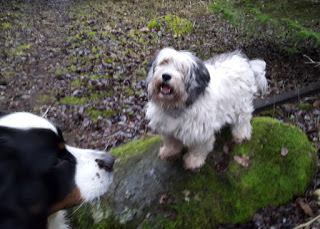 Trots att hon sedan i somras har varit helt blind hittade hon ändå sina träningsstenar. Här tillsammans med Tudor som väntar på sin tur att gå upp på stenen. Tickie bestämmer.