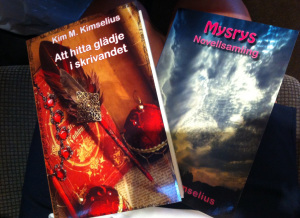 Kim har nu gett ut en ny skrivarbok ”Att hitta glädje i skrivandet”. Den har jag med mig till hängmattan tillsammans med hennes ”Mysrys” …