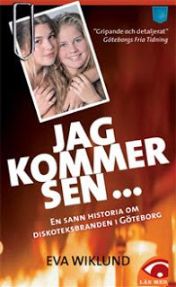 Boken berättar historien kring en av Sveriges värsta katastrofer i modern tid. Den baseras på två års research och intervjuer med överlevande ungdomar, brandmän, chefsåklagare, kommunens stödpersonal, advokaten Thomas Bodström med flera. Jag kommer sen är en oerhört stark berättelse, som skildras med värme och hopp. Eva Wiklund är en mycket skicklig författare, vars språk griper tag, personskildringarna berör ända in i hjärteroten och miljöskildringarna får mig att flämta efter luft mitt i brandens hetta.