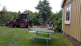 Det grävdes och fixade även ute på gården för att allt skulle bli så bra som möjligt för kursdeltagarna. Vattnet kom igång sent på fredagen, men först på lördagen kom det varmvatten. Det gjorde inte så mycket. De som sovit över vaknade till rejält inför kursstarten.