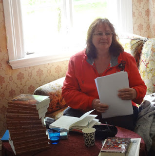 Ja, då är kursen avslutad. En hel hög av min skrivbok, Att hitta glädje i skrivandet, ligger och väntar på kursdeltagarna. Böcker de helst hade velat ha redan när de kom på fredagen, men de fick vänta. Jag hade även med mig min första skrivbok