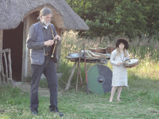 Medan jag läste spelade instrumentmakaren Åke Egevad på sina historiska instrument. När jag var klar med min föreläsning/uppläsning tog Åke vid och berättade om vikingatida instrument och "Ramona" fick hjälpa till att spela.