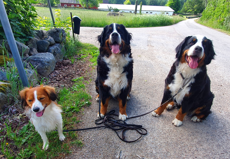 Nåväl, nu är det dags för morgonpromenad innan det blir för varmt. Vi har redan varit en runda på tomten och mördat Mördarsniglar. Hann knappt resa på ryggen innan det var dags att böja den för att klippa itu fler mördarsniglar.