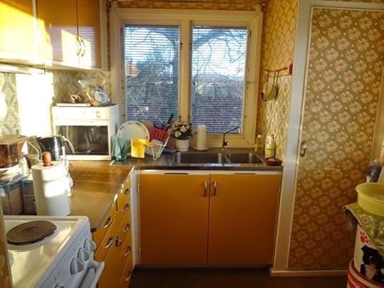 Rakt genom fönstret går strålarna, in i mitt lilla kompakta kök med kallvatten.