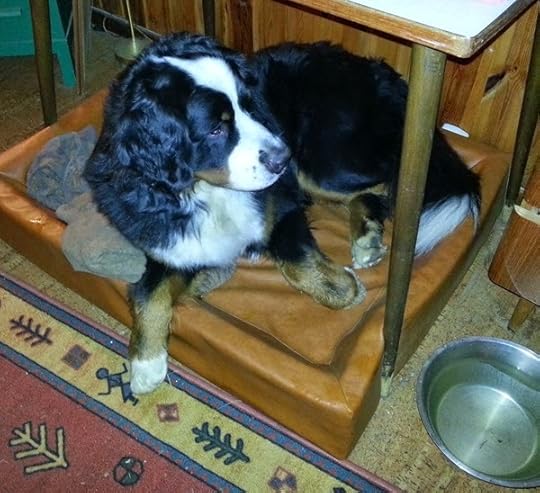 En populär sovplats för alla hundarna i familjen. Här är det Tudor som lagt beslag på den. (Här finns gott om sovplatser så det räcker och blir över för alla hundarna, men denna är speciellt populär.)