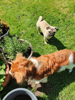 Gösta stirrar på krukorna och Kotten. Han har nog rätt den där Kooikern. För när han sätter sig, då får han godis av matte. Nästa gång ska han springa sin väg när hon säger FÄSTING. Då kanske han får ännu mer godis. Han älskar godis.