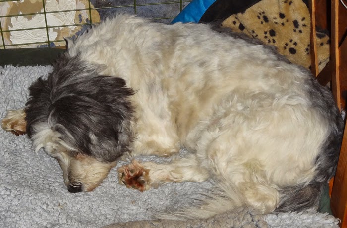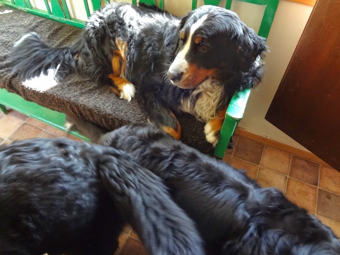 Här är lilla Fanto med på bild. Han fick inte vara med de stora hundarna, eftersom Pluto och Fanto inte tycker värst mycket om varandra. Däremot älskar Tickie Fanto och studsar jämfota av glädje när hon ser honom.