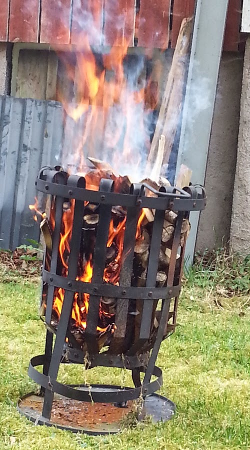 Under den kyliga majkvällen var det skönt att värma sig vid elden ibland.