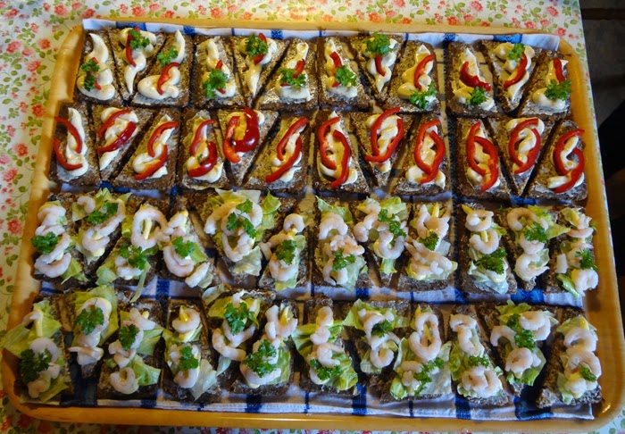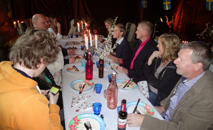 Festlokalen fylls av folk och vi börjar äta. Jan och jag har lagt mat i flera veckor och stoppat i frysen.