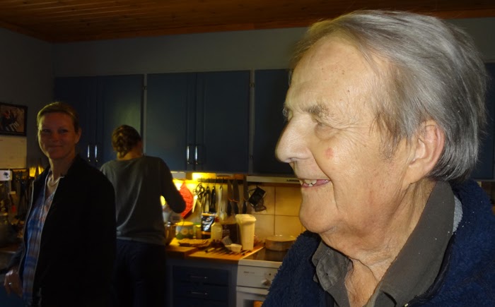 Pappa pratar och pratar och blir glad för varenda kram han får och det blir många kramar från alla goa gäster. Är så glad att pojkarna turades om att hämta och köra hem pappa så att han fick vara med på mitt 60-årsfirande.