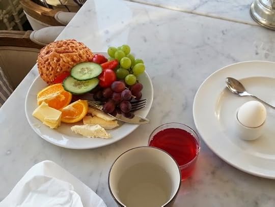 Jag duschar och gör mig redo. Går igenom rummet och ser efter att inget är kvarglömt, fattar handtaget på min röda resväska och slänger en sista blick ut genom fönstret. Jag lovar mig själv att jag ska komma tillbaka. Snart, för jag inser att den här vistelsen har gett mig ro i själen och ny energi. Jag kliver ut genom dörren som går i lås bakom mig och vandrar den långa korridoren mot receptionen och utgången.