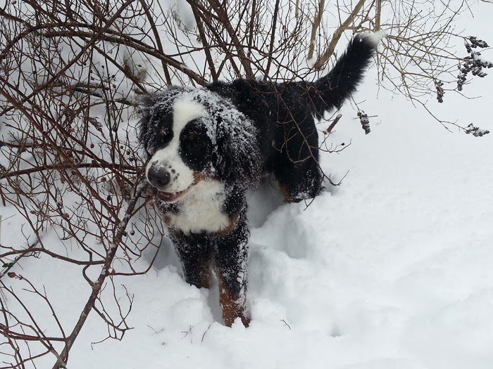 Snökaos i Blekinge då njuter mina Berner Sennen av livet