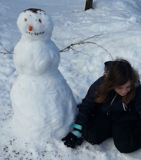I mars fick jag kärt besök och hjälp av barnbarnet Frida att göra en snögubbe.