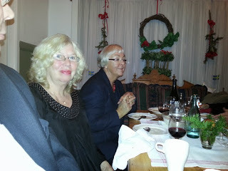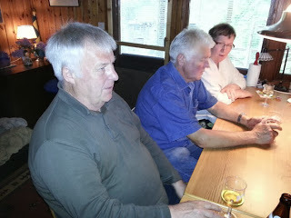 Våra kära grannar runt min skrivarstuga kom på middag och allt hade varit perfekt, om det inte var för att en av vännerna inte tålde vitlök, något som det fanns gott om i maten... Här är det Nils, Kjell och Ellen på bild.