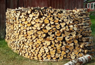 Som vanligt kom veden på sommaren. Jag älskar lukten av nysågad/nykluven ved. Ett hårt arbete som jag älskar! I år fick Jan för sig att stapla veden så här vackert.