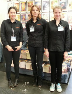 På tisdagen lämnade vi av allt material på bokmässan, på onsdagen byggde vi montern och på torsdagen satte det igång med full fart.
