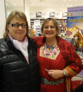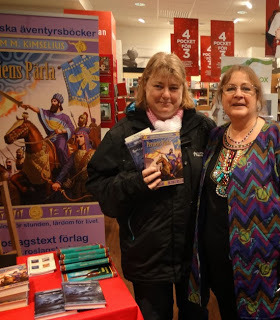 Även här mötte jag många trevliga människor, bland annat den här mysiga damen som gav mig en härlig pratstund. Det roligaste under den här signeringsdagen var dock när det kom två fransmän och frågade om jag talade franska "ja lite granna" svarade jag. Men det är en sak att ha lärt sig franska och att diskutera mina historiska böcker på franska, plötsligt kändes det som om jag inte kunde någon franska alls. Får börja plugga igen... Kul hade vi iallafall och de var mycket intresserade av mina böcker.