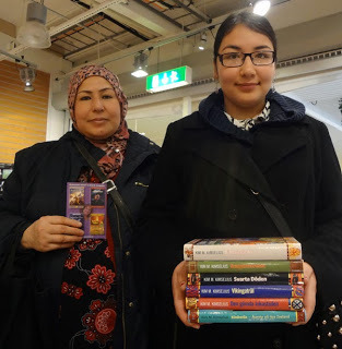På lördagen var det dags att signera på Akademibokhandeln i Jägersro center i Malmö. Här kom en av mina stora fan, eller jag kanske ska säga två av mina stora fan, för det är Zahra som har börjat läsa mina böcker och fått även sin mamma, Sherin, att gilla dem. På bilden ser du Sherin.