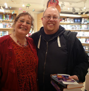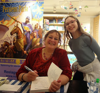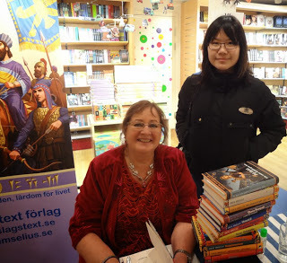 Det var förvånansvärt många fans som kom och jag kände mig alldeles hjärtevarm när jag var omgiven av dem alla, deras glada leenden, glittrande ögon och härliga frågor. Tack för att ni kom och förgyllde min dag! Dessutom ett stort tack för att ni delade med er av era kunskaper om mina böcker och tipsade de som stod och bläddrade bland mina böcker!