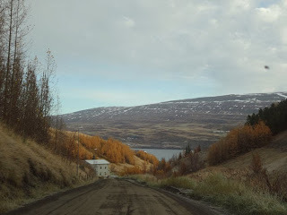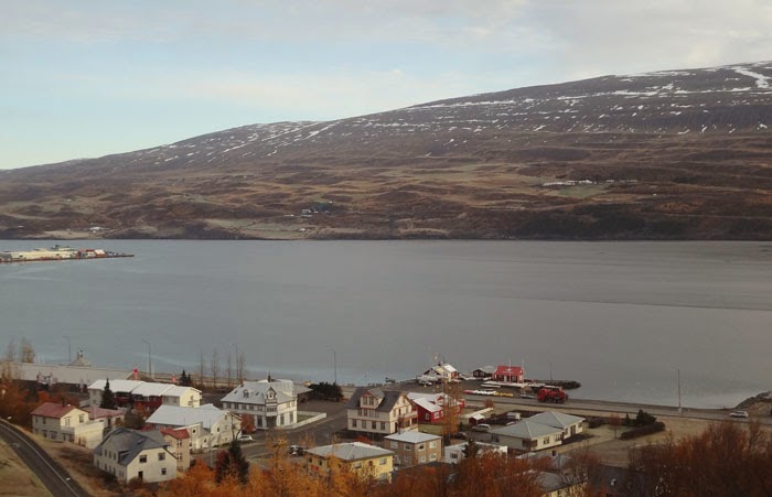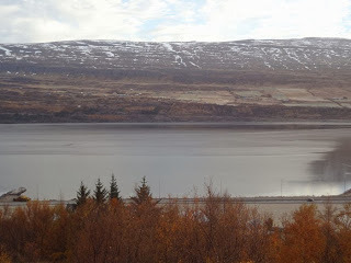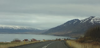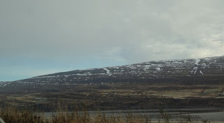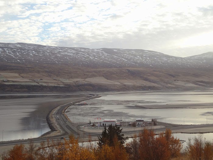 Vi färdades över fjorden vid Akureyri och längs fjällets fot, för att sedan ta oss över till andra sidan.