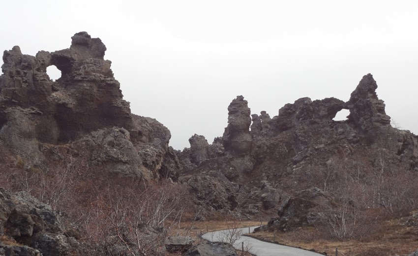 Vi kom fram till den svarta vulkanen Dimmuborgir . Platsen väckte min fantasi...