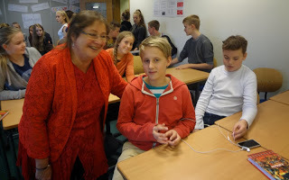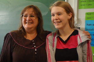 Här är jag tillsammans med läraren Alma, som hjälpte till att översätta lite av min svenska för de dansktalande skoleleverna, som förstod mycket bra vad jag sa.
