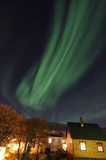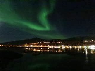 Norrskenet dansar över hustaken i AkureyriDå var ännu en dag på Island avklarad och jag inser att det faktiskt snart är dags för avfärd, halva tiden har gått. Känns lite vemodigt, samtidigt längtar jag hem till Jan och hundarna.