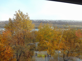 Fjällsidorna skiftade i mängder av färger och vissa sluttningar var röda av höstfärgade blåbärsblad. Thora berättade att hon hade plockat mängder av blåbär här tidigare under året. Vi hittade även några blåbär på de små, låga blåbärsbuskarna.