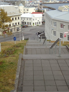 Upp till den här kyrkan leder mängder av trappor. Ja, jag har gått allihop! Strax nedanför kyrkan ligger mitt hotell, mitt i centrum av Akureyri