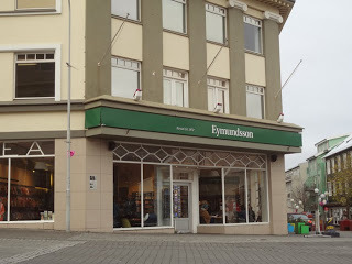 Mittemot mitt hotell låg bokhandeln, bättre kunde jag inte bo. Här hittade jag genast min nya bok Töfrasverdid på bästa skyltplats inuti butiken.